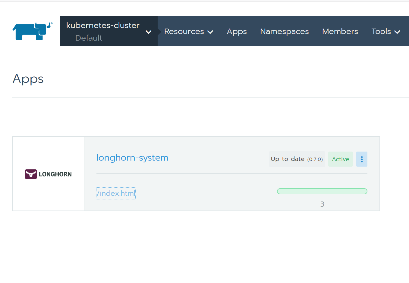 After Longhorn has been successfully installed, you can access the Longhorn UI by navigating to the Catalog Apps page.