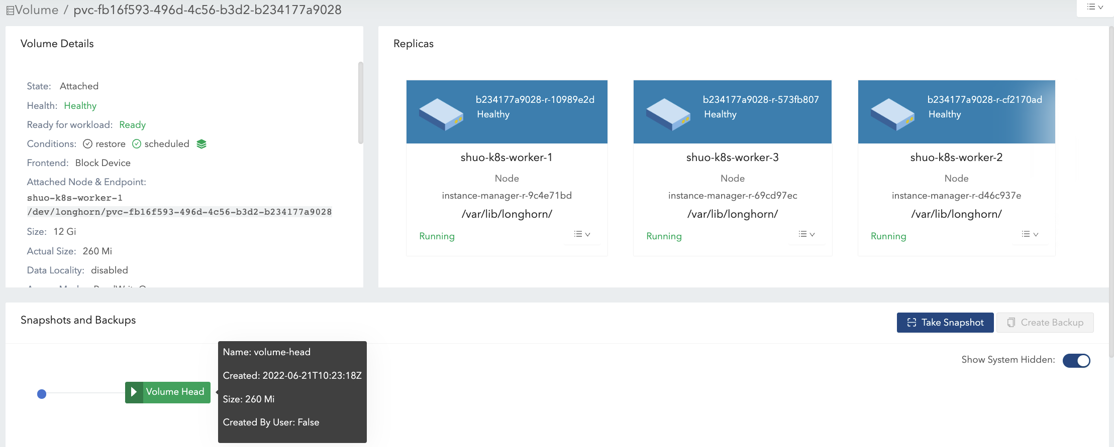 actual size, which is the size sum of the volume head and all snapshots, is possibly bigger than the size specified by users.Even if users will not take snapshots for volumes, there are operations like rebuilding, expansion, or backing up that would lead to system (hidden) snapshot creation. As a result, volume